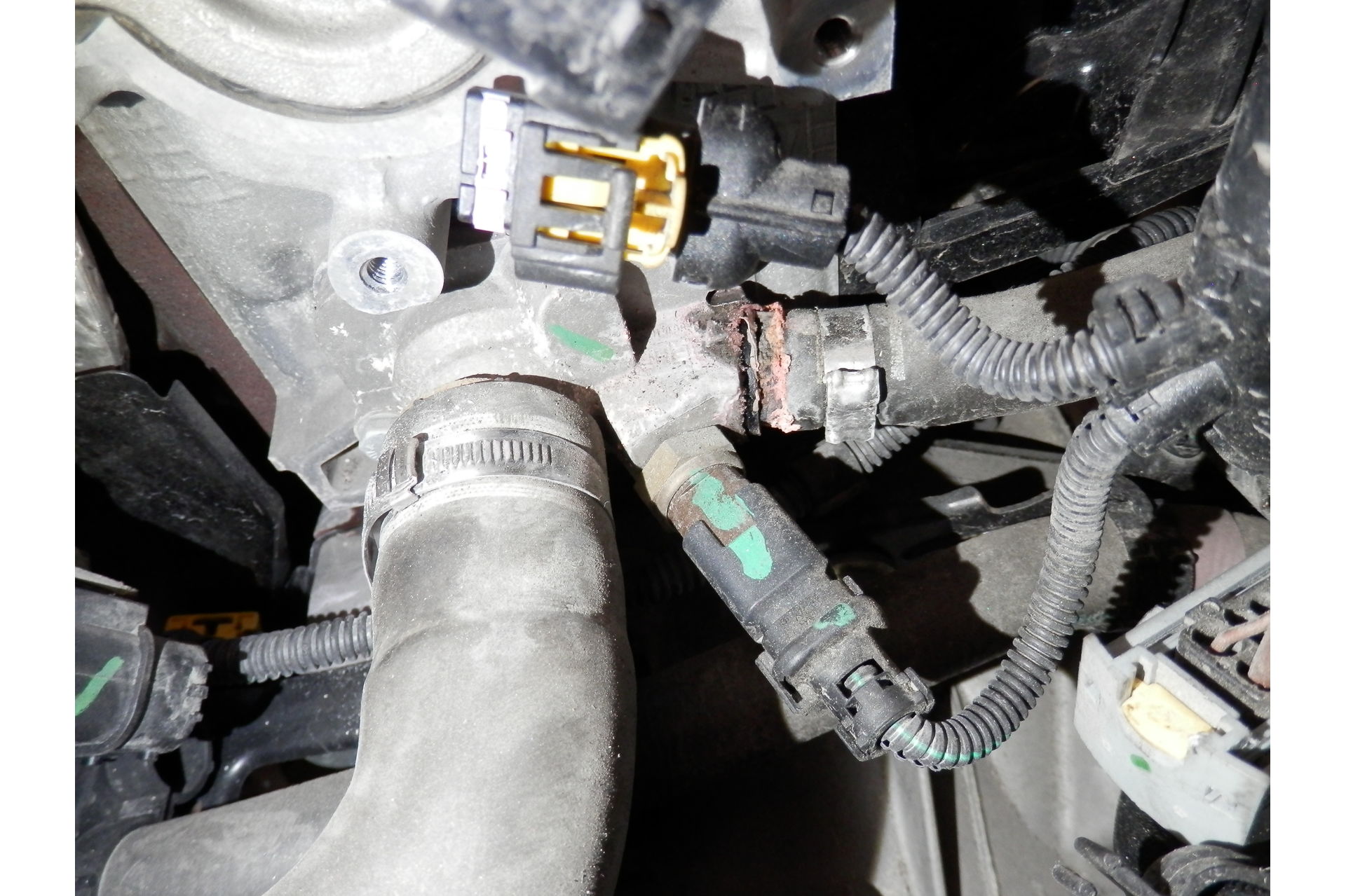 外したケースです。ヒーターホースが刺さる部分が樹脂になっています。