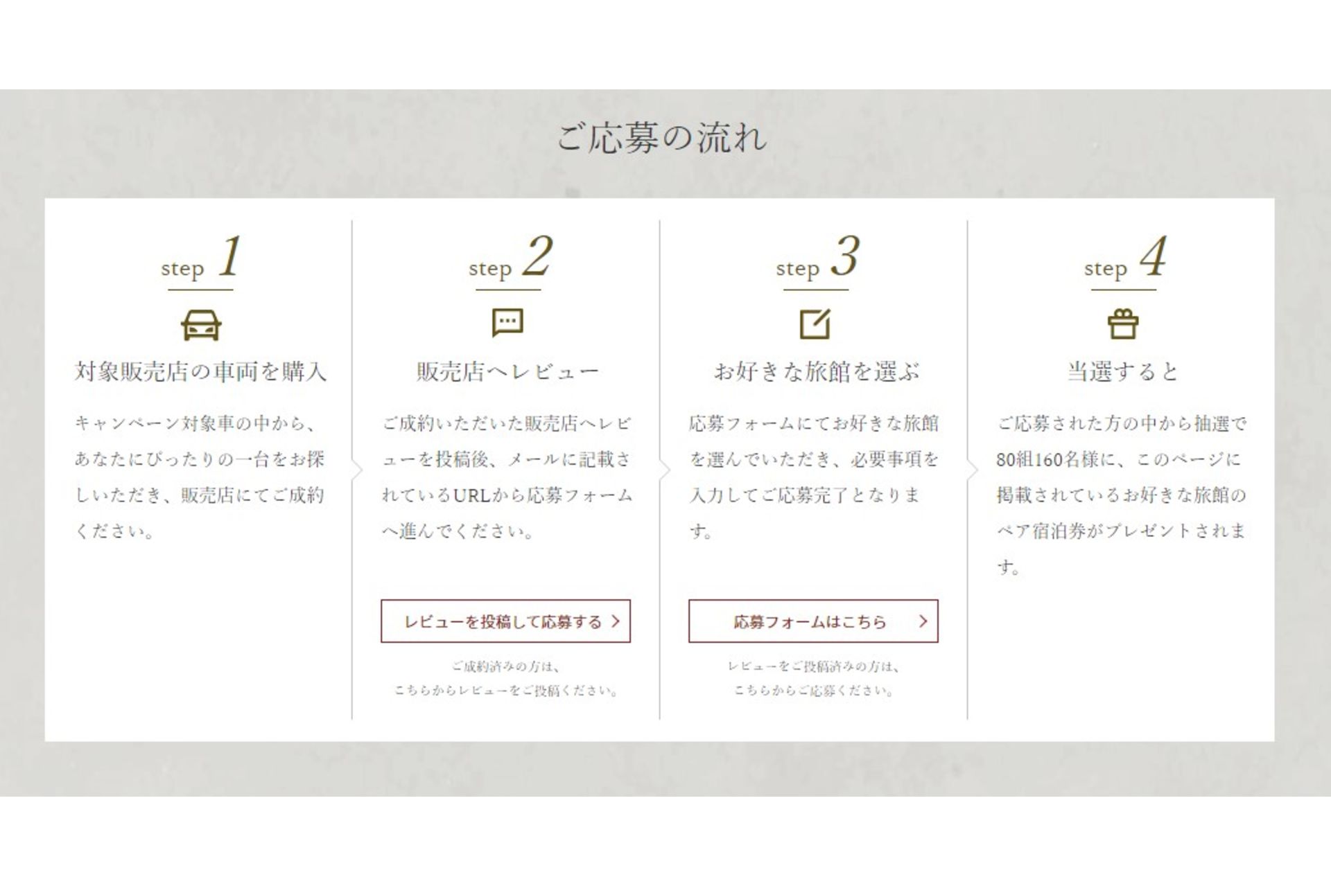 2021/12/6~2022/1/31の期間の間に対象車両をご成約の上、レビューを投稿後専用フォームから