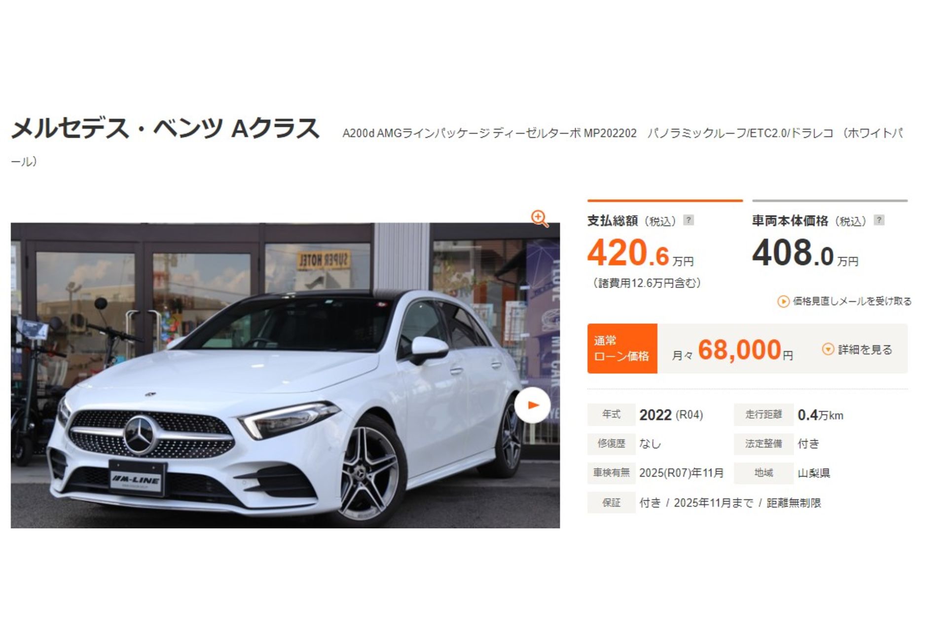 ベンツA200dAMGライン 新入荷! 山梨でベンツの中古車なら!