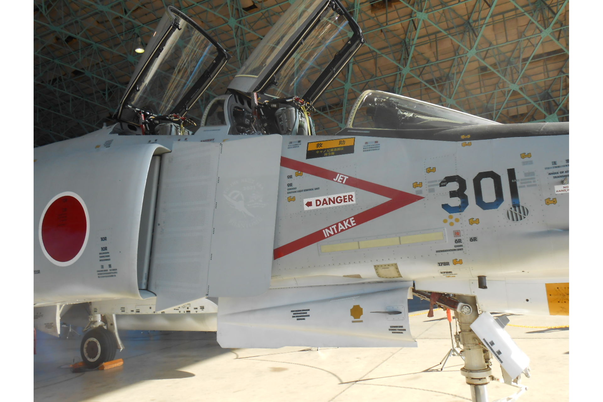 格納庫内で、装備品と共に展示中でした。