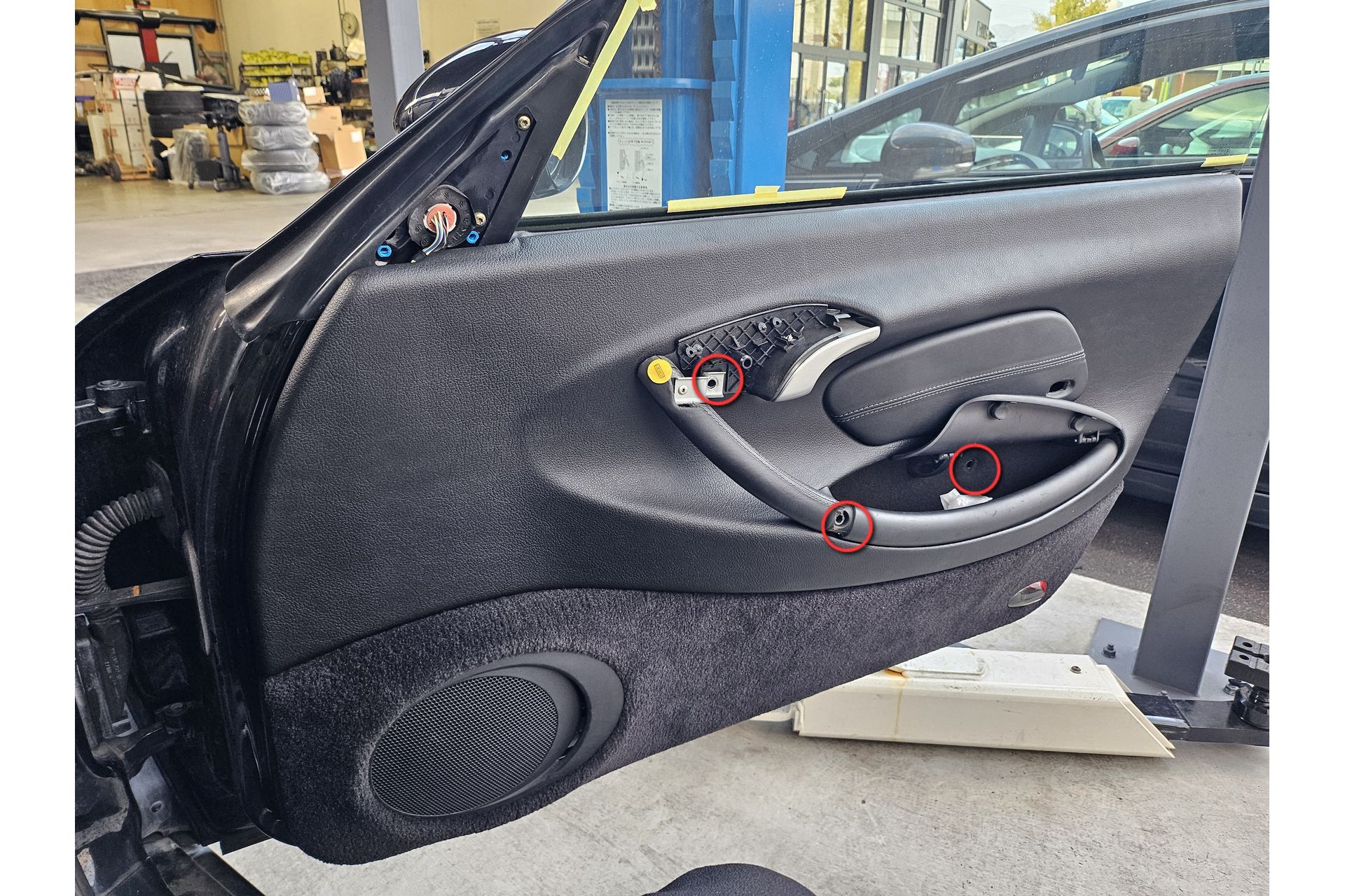 次にドアの内装を取り外すために⭕印の所にボルトがあるのでボルトを外していきます!