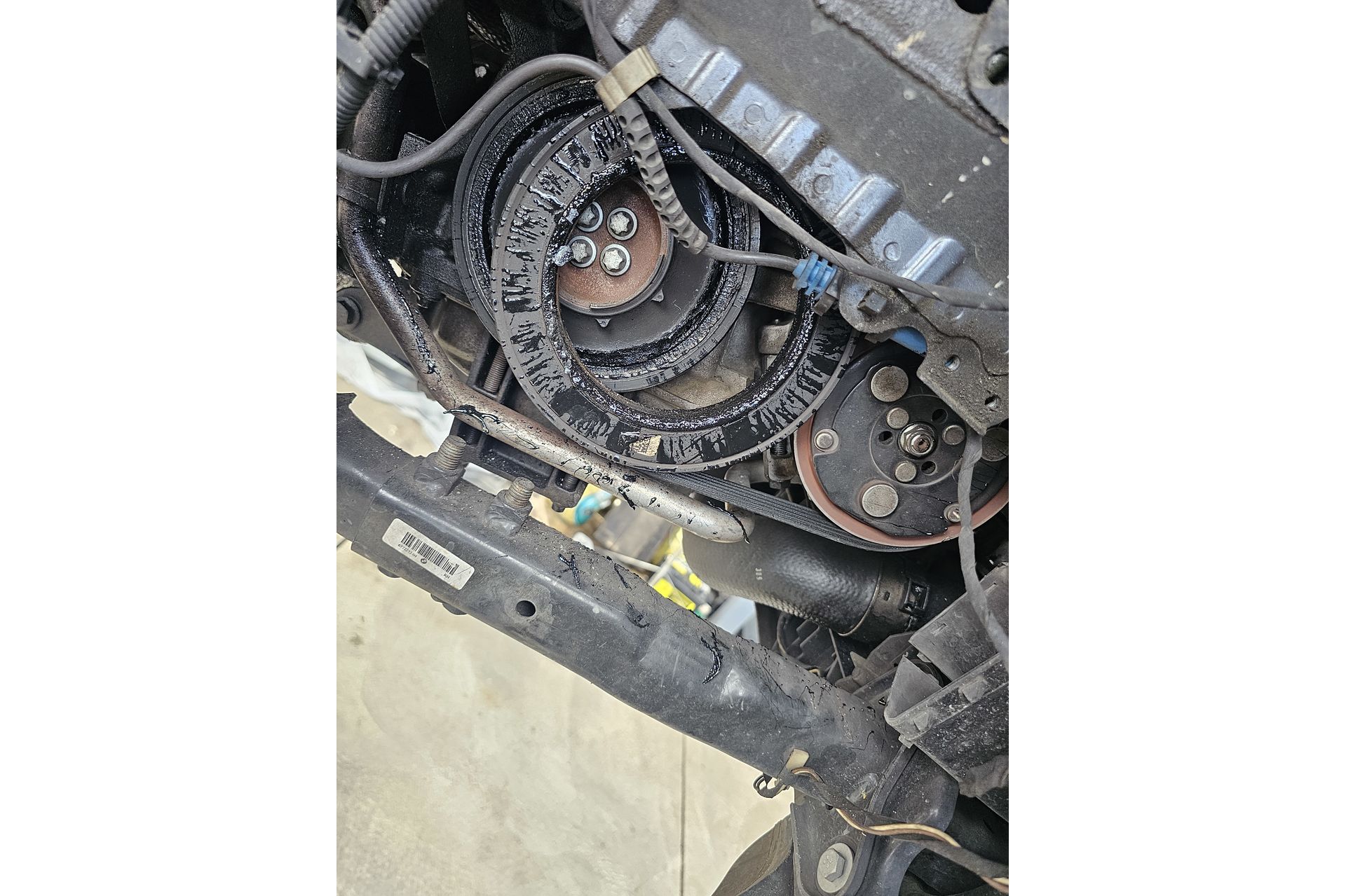 クランクプーリーのバイブレーションダンパーが劣化により飛んでしまいます。