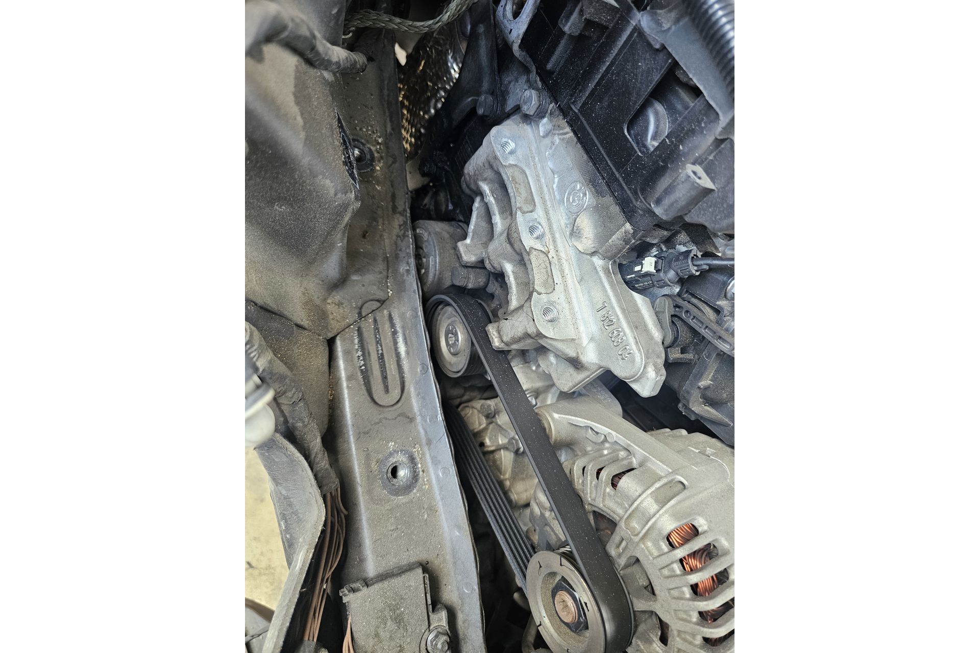 今回交換するのは、クランクプーリー ベルト テンショナー、アイドラプーリーになります。テンショナーを交換するのにエンジンを上下させる必要がありますのでエンジンマウントを外して作業を行います。