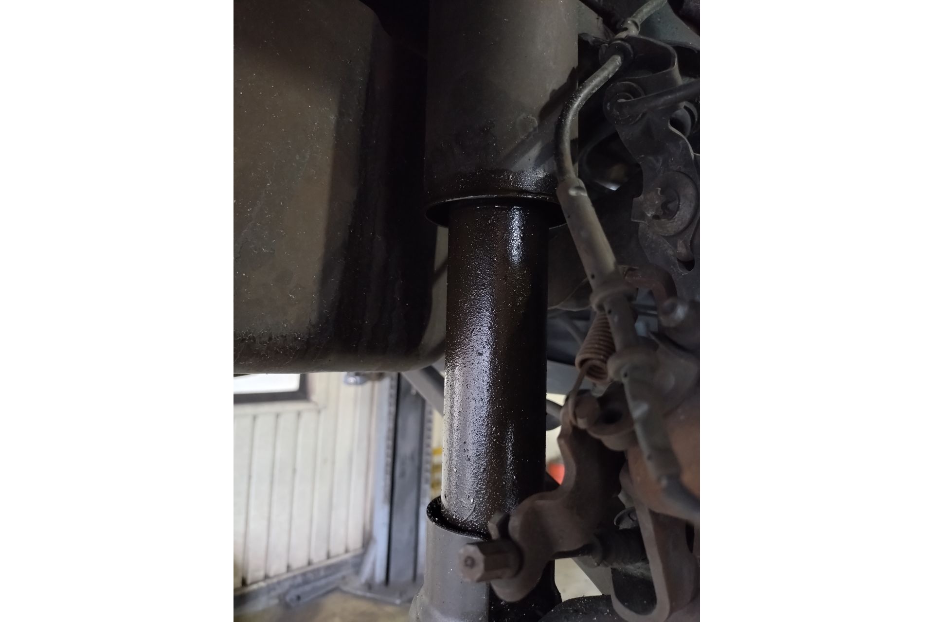 車検でのご入庫でしたが、点検をしているとリアショックからオイル漏れを発見💦