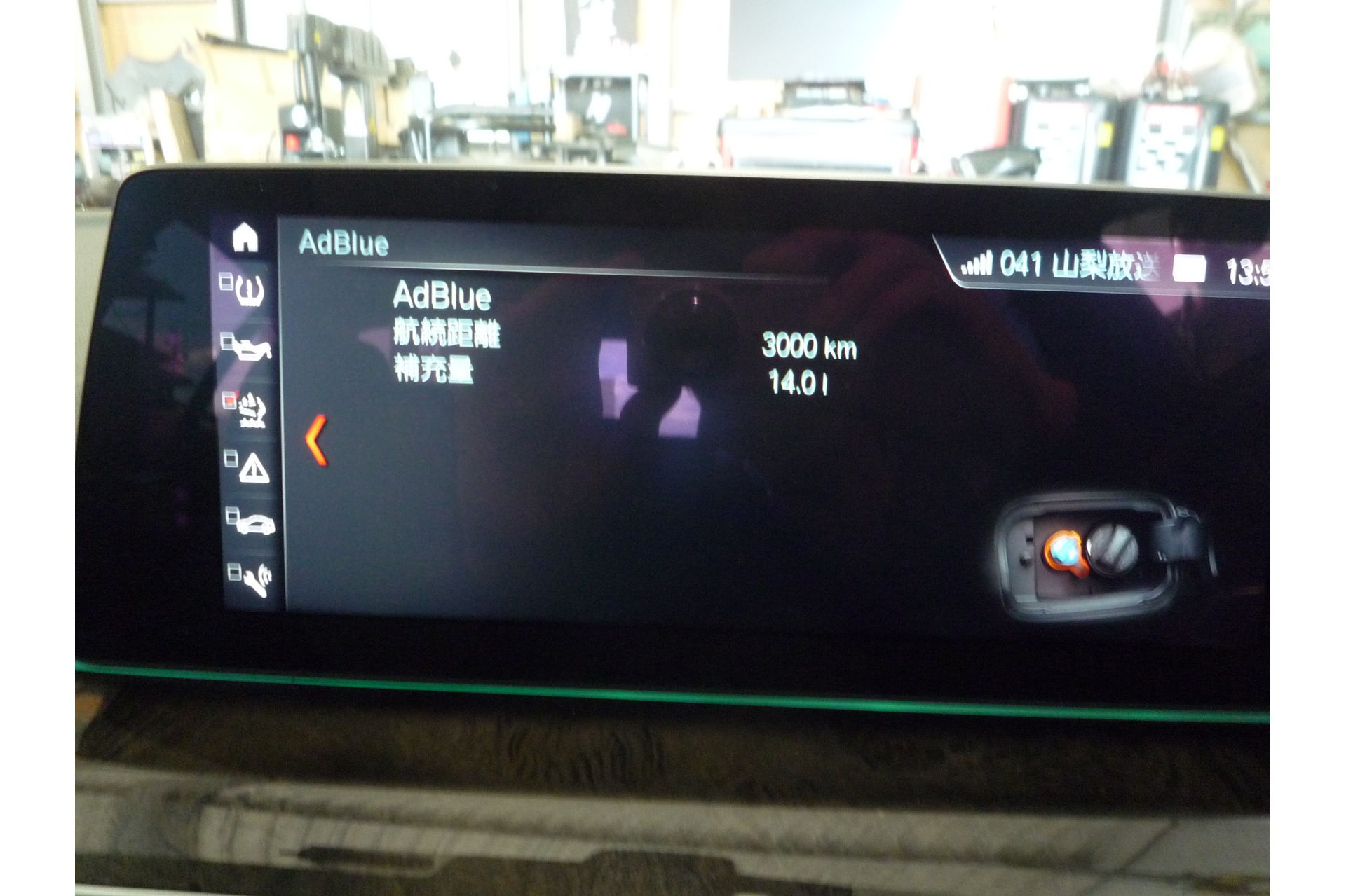 G30はアドブルー補充中、リアルタイムに充填量が表示されますので凄く助かります