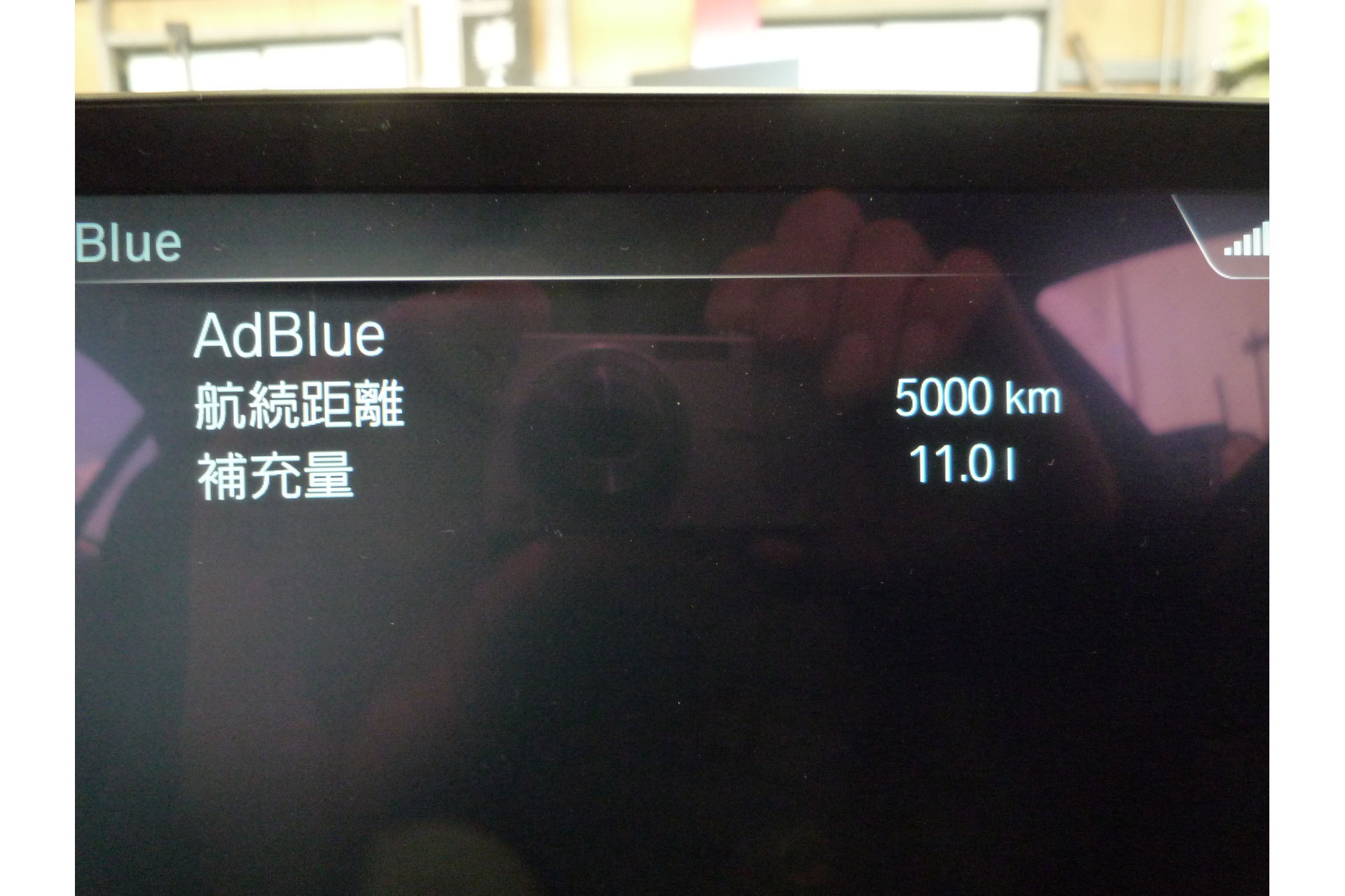 アドブルー補充前の状態は、航続距離3000Km