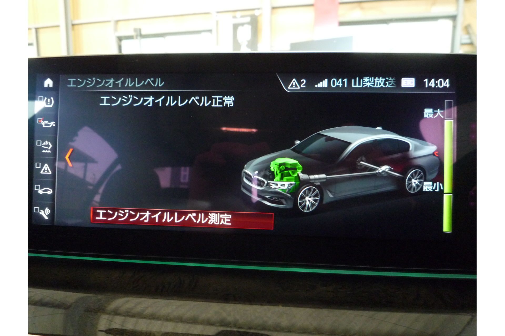 オイルレベルゲージが付いていない為、車両内でオイル量の確認を行います