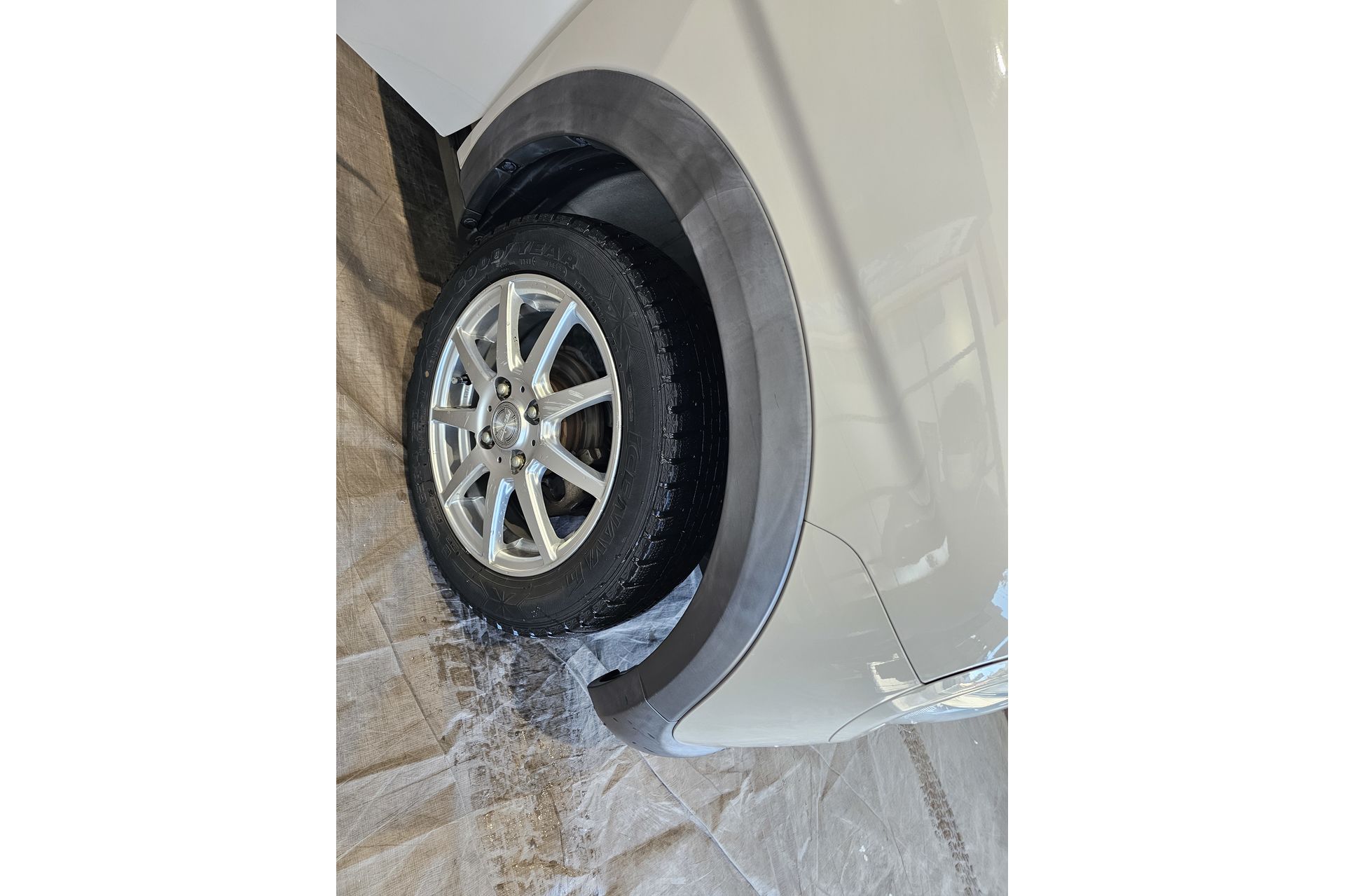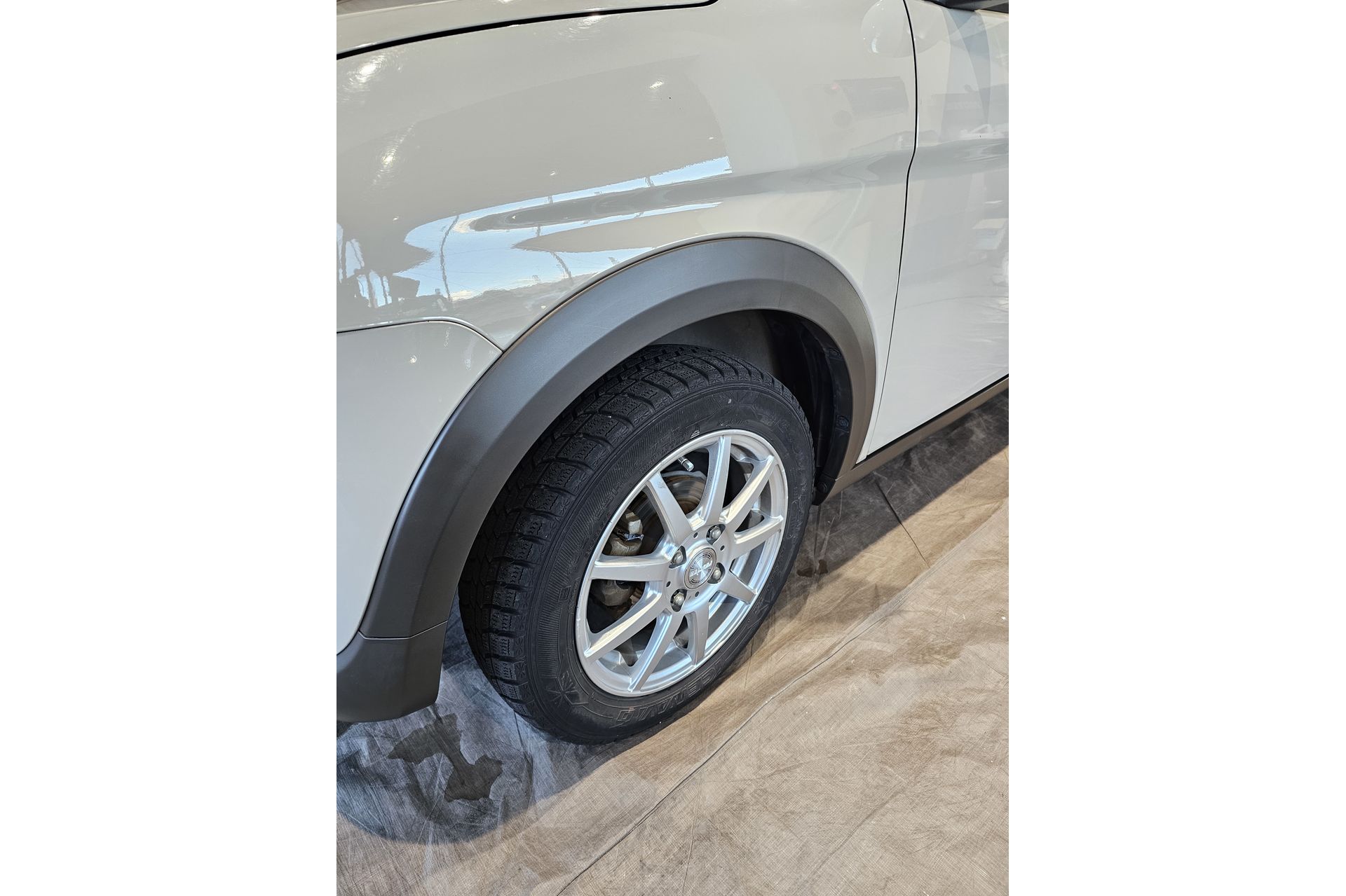 フロントのフェンダーモールの写真になります。確かに白くあせてしまっています。本来はしっかり黒い色なのですが、紫外線や汚れの蓄積により、劣化してしまっております。