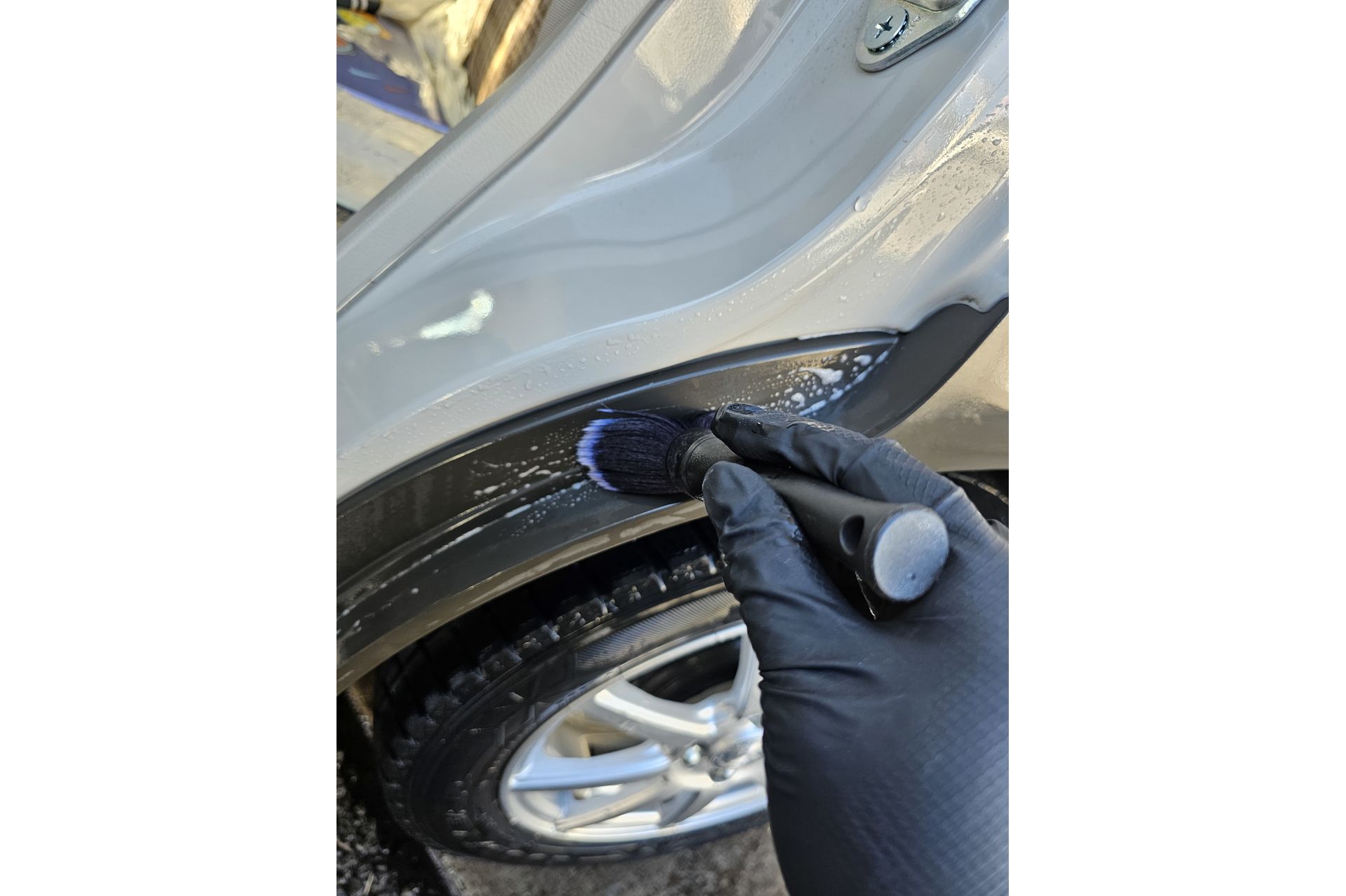 さて、樹脂モールですが特殊な用材を使い洗い上げていきます。しっかり汚れを落とさないとコーティングの定着も悪くなりますので気を抜かず行います。ドアの内側にも樹脂モールが入り込んでいるので忘れずに洗っていきます。