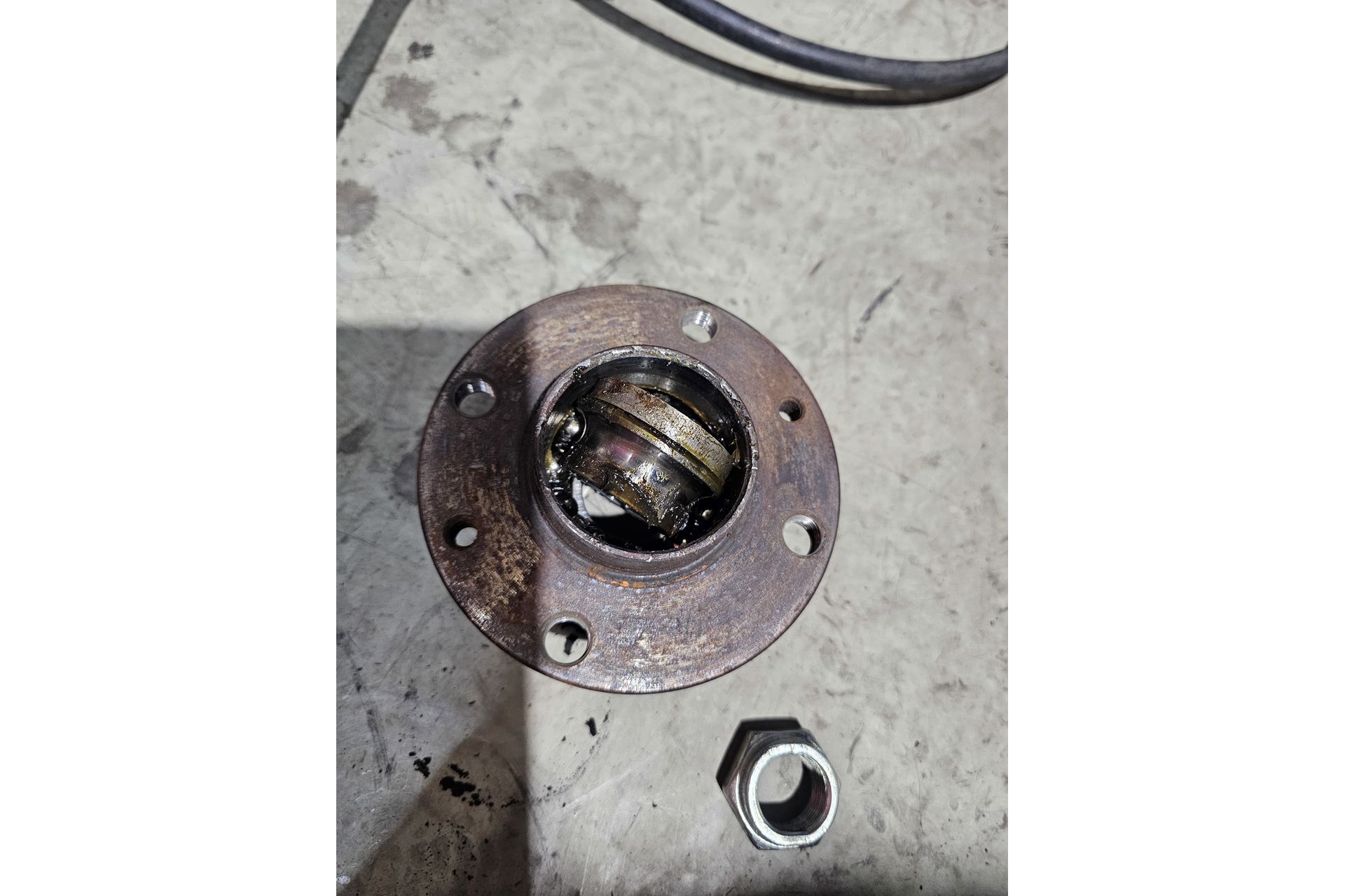 本題のハブベアリングですがセンターのナット外したらあっけなく外れてしまいました。