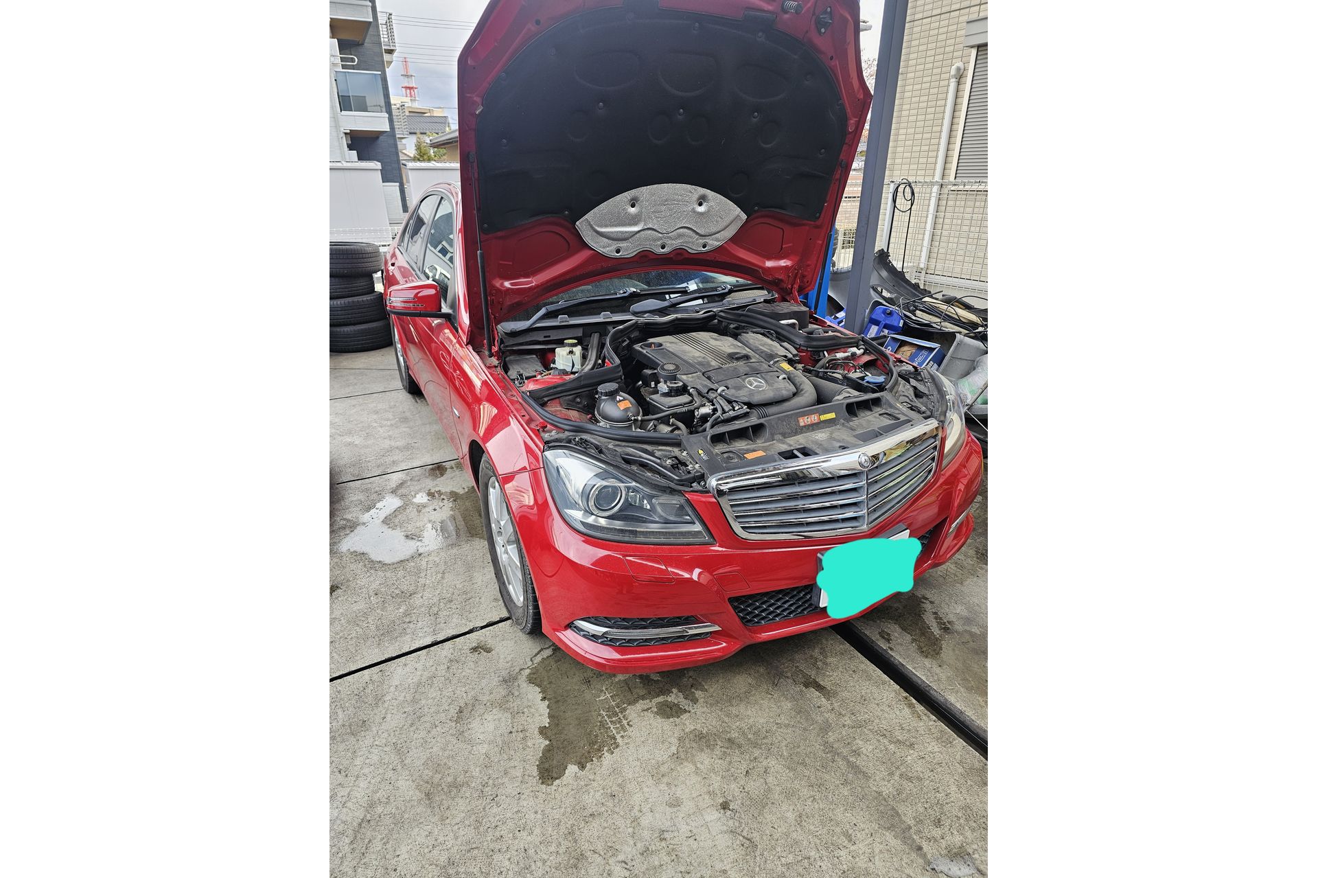 本日はメルセデスベンツ w204 cクラスの修理内容になります。真っ赤なベンツはカッコイイですね。ボディの状態も良く綺麗にされている車両です。