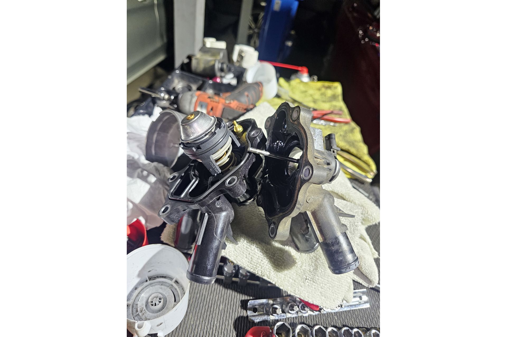 あまり、204ベンツでサーモケースから水漏れを起こすのは珍しいです。ベンツに限らず最近の車両はサーモケースがプラスチックでできている為、非常に漏れやすい部品です。