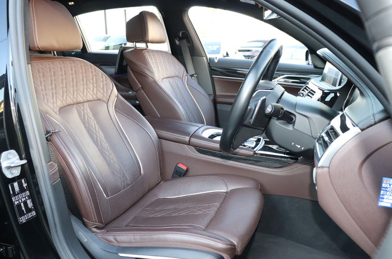 BMWのフラッグシップモデルである7シリーズの中でも、750LiはV8ツインターボエンジンを搭載し、余裕あるパワーと圧倒的な静粛性を兼ね備えています。Mスポーツパッケージならではのスポーティーなエアロデザインや専用アルミホイールが、ラグジュアリーでありながらも力強い存在感を放っています。